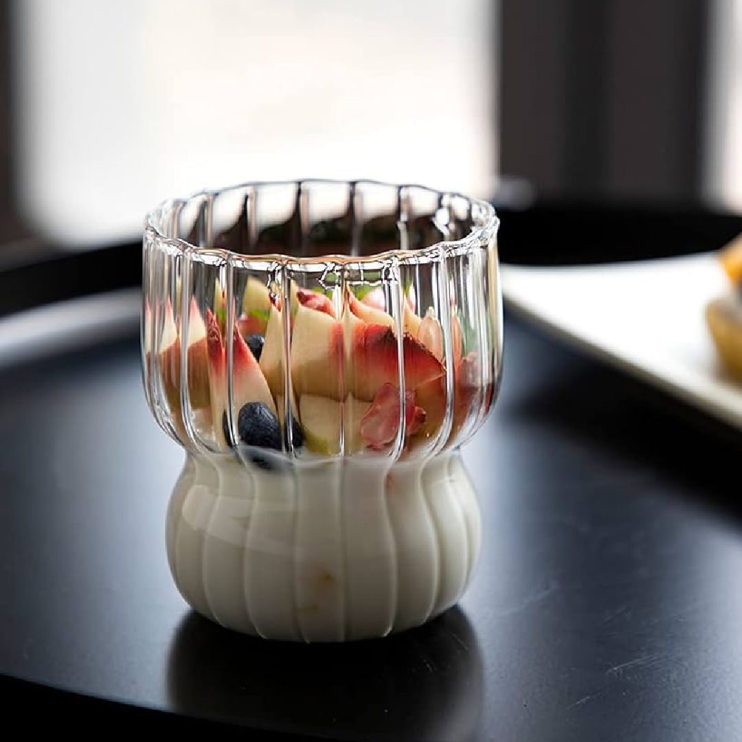 Transform every drink into an experience with the Curvy Ribbed Glass, a 300 ml tumbler that marries elegant aesthetics with functional design. Crafted from premium borosilicate glass, this glass features striking vertical ribbed texture that refracts light beautifully, giving your drink a luminous, artisanal presentation. The smooth, curvy silhouette offers both visual appeal and a comfortable grip — perfect whether you’re sipping whiskey neat, enjoying gin & tonic, or serving a refined cocktail.