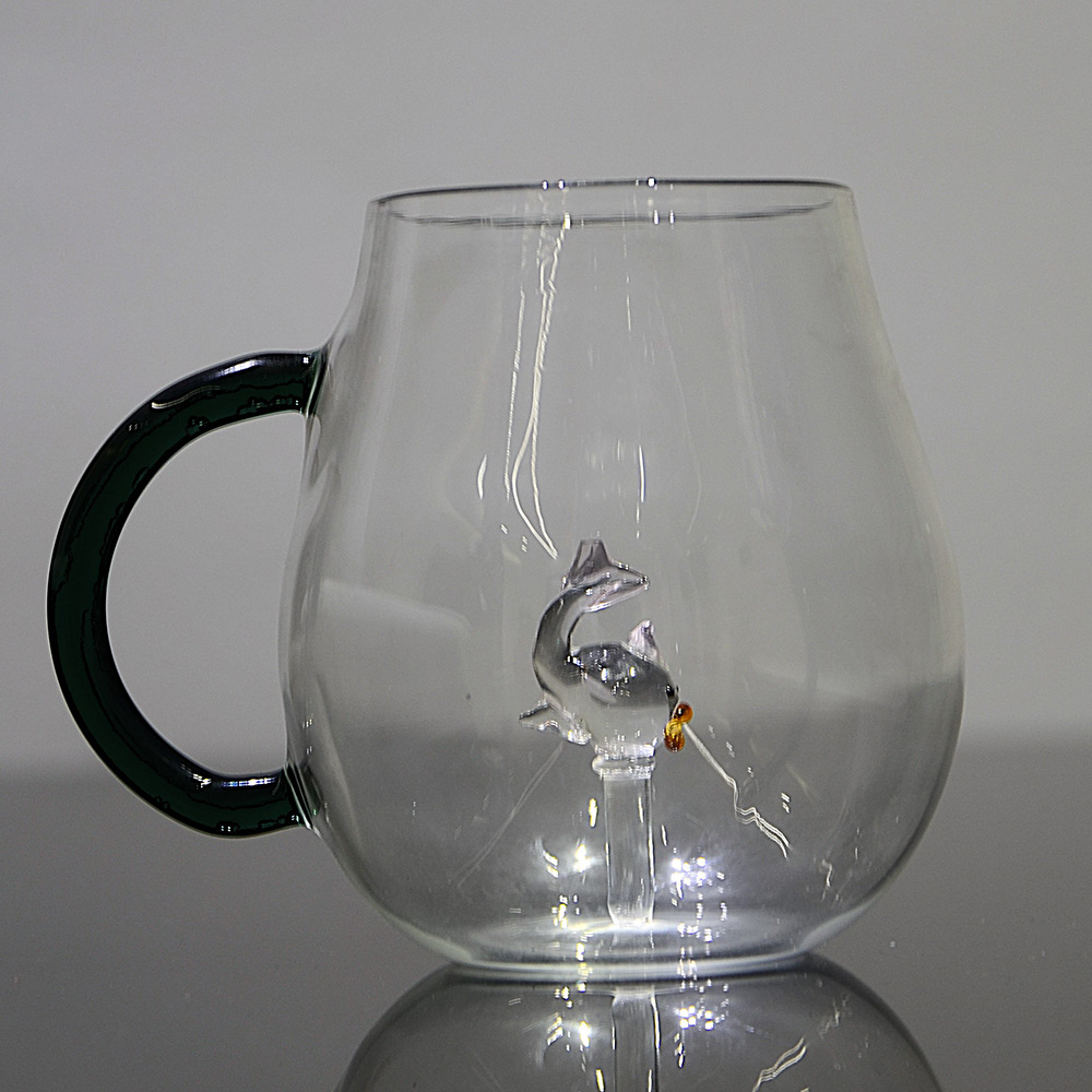 Pink fin fish cup, pink fish inside glass, borosilicate glass with fish, glass cup with pink fish figurine, underwater themed coffee cup, ocean-inspired borosilicate glassware, artistic fish cup, handblown green handle cup, whimsical fish mug, marine life glass cup, pink fish coffee mug, nature inspired glass cup, 3D fish inside cup, handmade fish cup, premium fish glass cup, tropical theme drinkware, pink fish collector glass, aquatic design cup, sea-themed borosilicate glass, colorful handle cup with fish, novelty tea glass, playful glass mug with fish, under-the-sea cup design, cute marine cup for gifting, eco-luxury glassware with fish detail, vibrant fish-themed tumbler