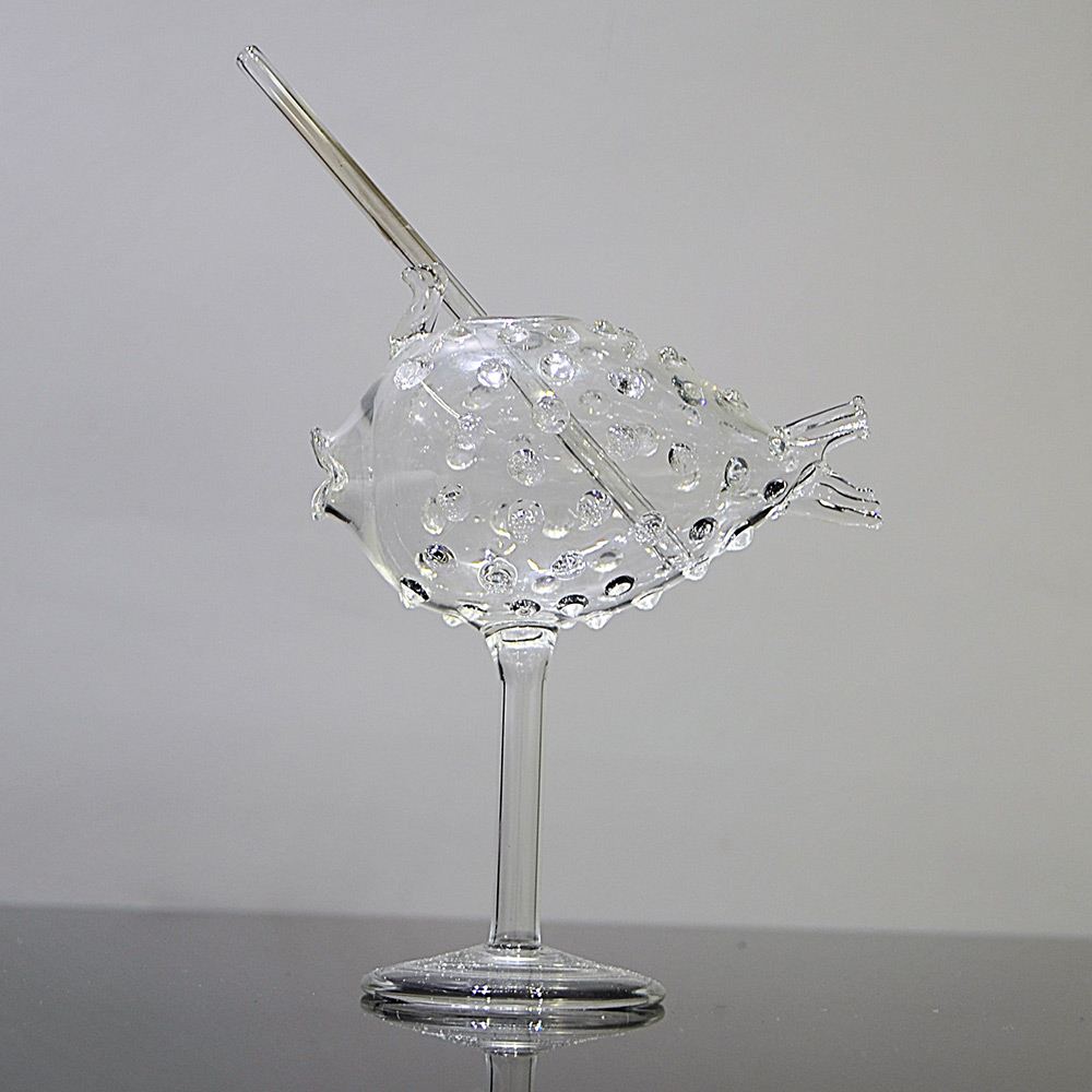 puffer fish glass, ocean theme glassware, beach bar glass, tropical drinkware, aquatic glass design, novelty cocktail glass, handblown fish glass, funky barware, luxury borosilicate glass, unique drinkware for gifting, creative cocktail presentation, sea animal glass, underwater themed glassware, fun glass for parties
