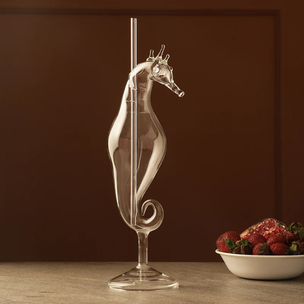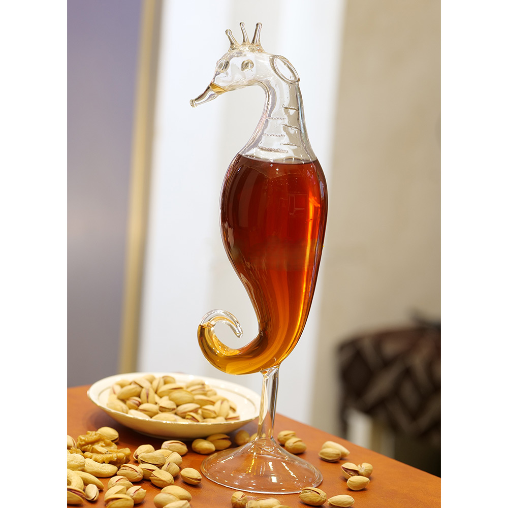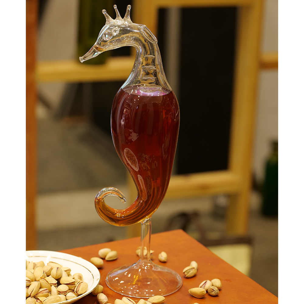 Sea Horse Glass, seahorse-inspired drinkware, ocean-themed glass, elegant marine life glassware, artistic seahorse cup, unique sea creature glass, handcrafted ocean glass, decorative seahorse tumbler, luxury coastal glassware, nautical-themed glass, creative underwater drinkware, stylish marine barware, collectible sea glass, tropical seahorse glass design, beach-inspired cocktail glass.