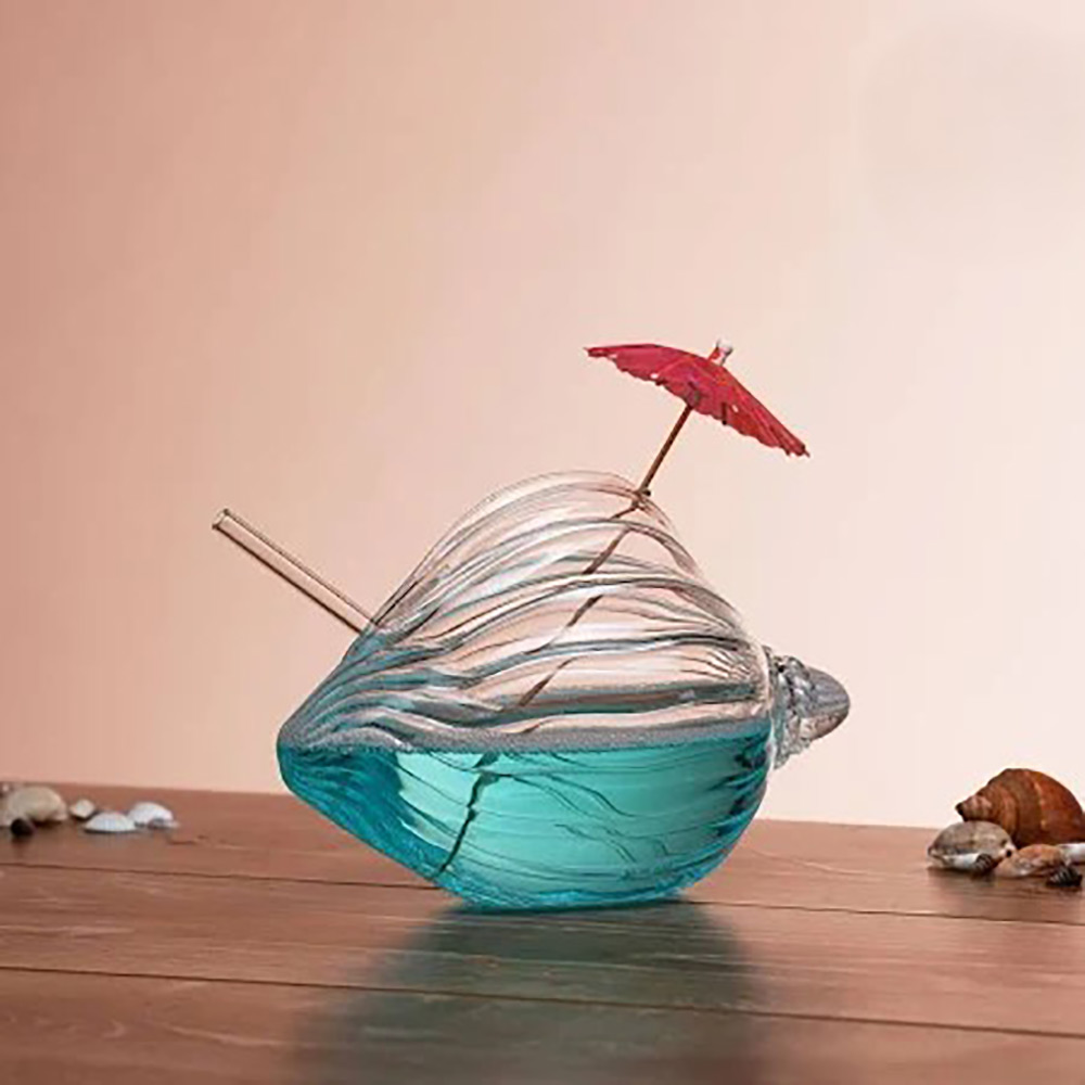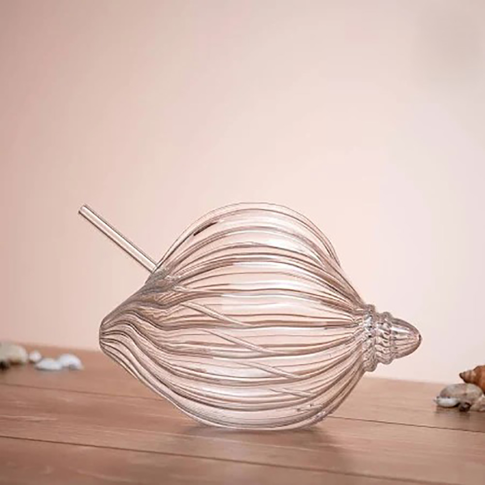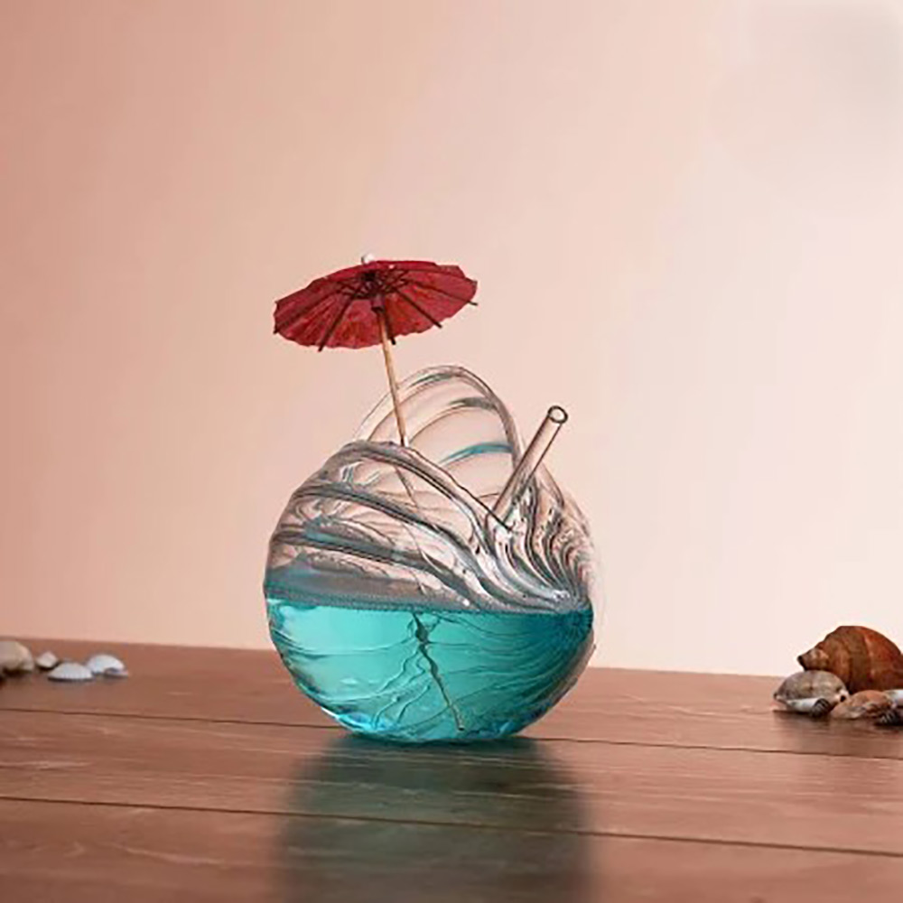 The glass features elegant wavy ridges along its body—just like natural seashells washed ashore—allowing light to shimmer through and create a luxurious aesthetic. Whether you’re hosting a beach party or simply relaxing at home, this unique shape turns every sip into a vacation moment.